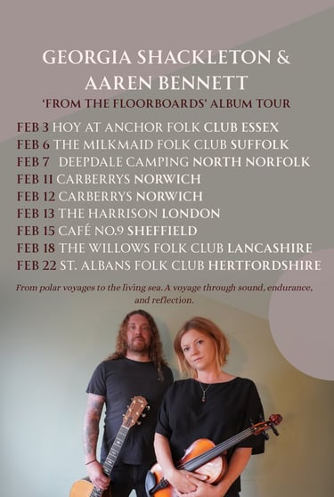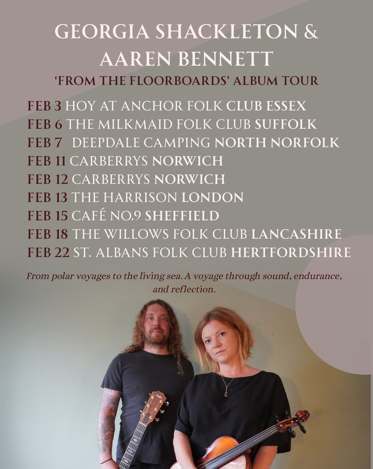 Georgia recently received support from Arts Council England to compose a body of work to celebrate our struggling marine life, collaborating with conservationist and Luthier, Steve Burnett using his Shackleton Violin. This amazing instrument is made from floorboards salvaged from Ernest Shackleton’s former Edinburgh home, and driftwood collected from East Lothian beaches. Sign up to mailing list to receive updates on how the project is going, including recordings of songs written and sung on board Shackleton’s expeditions..